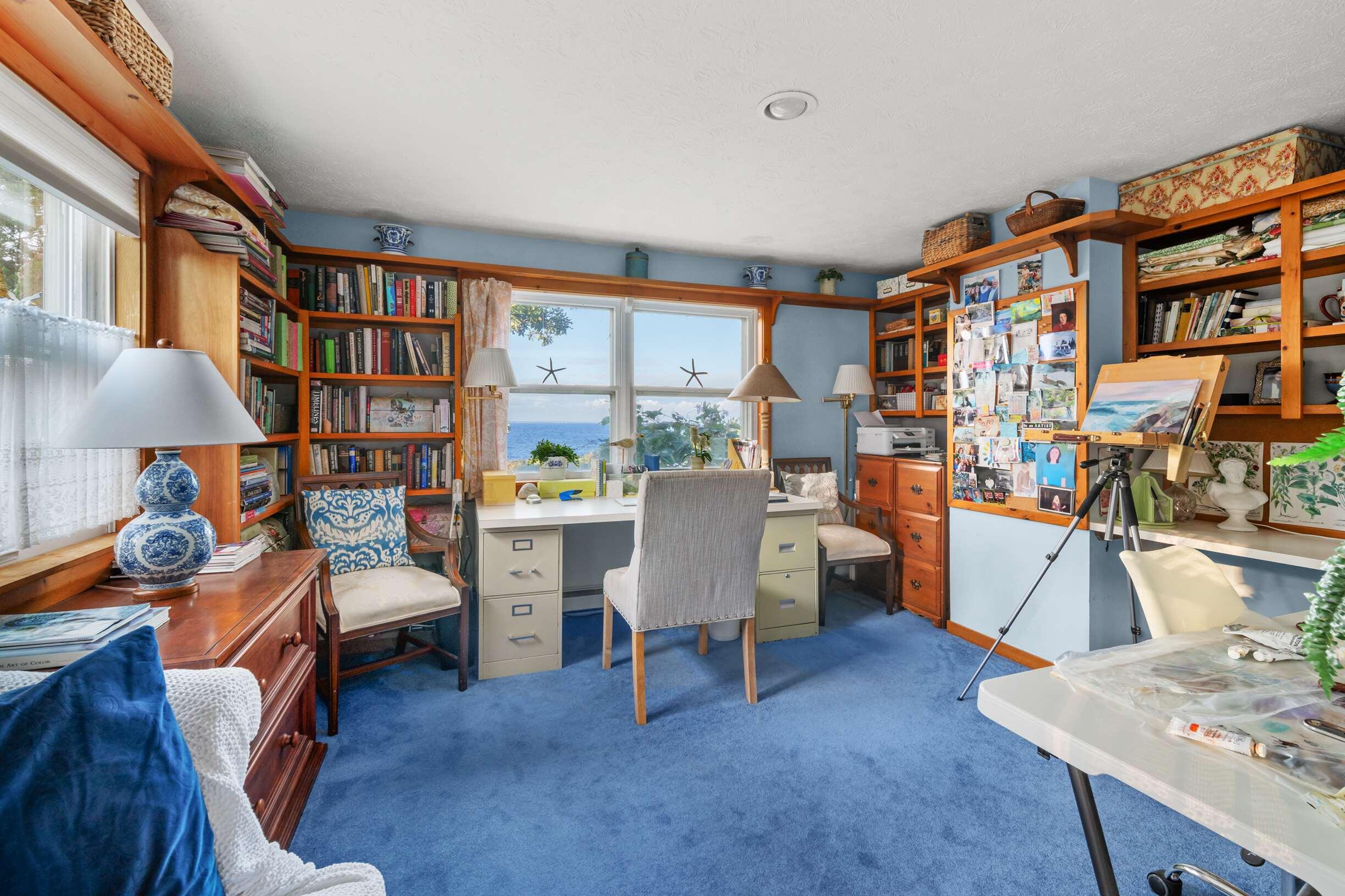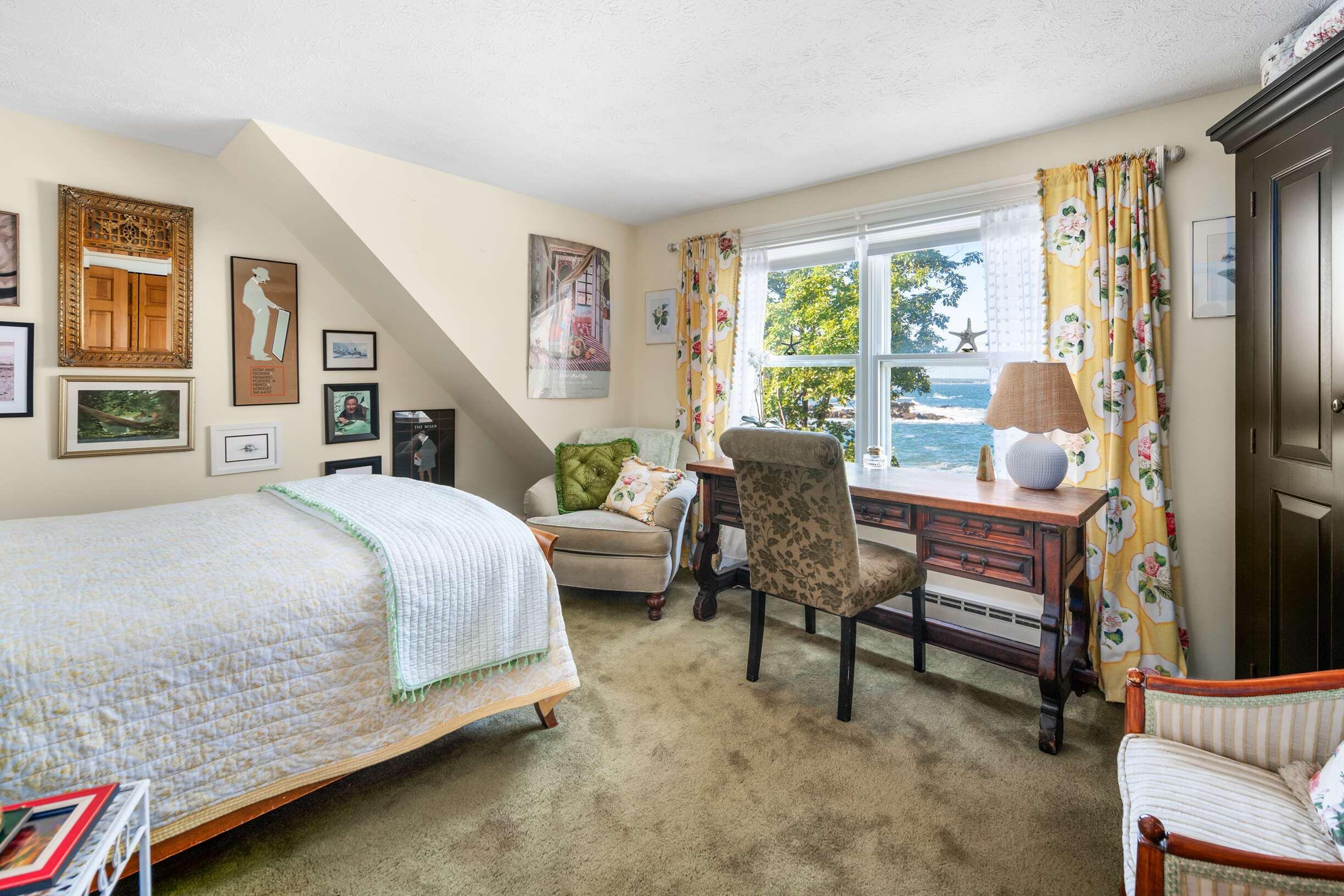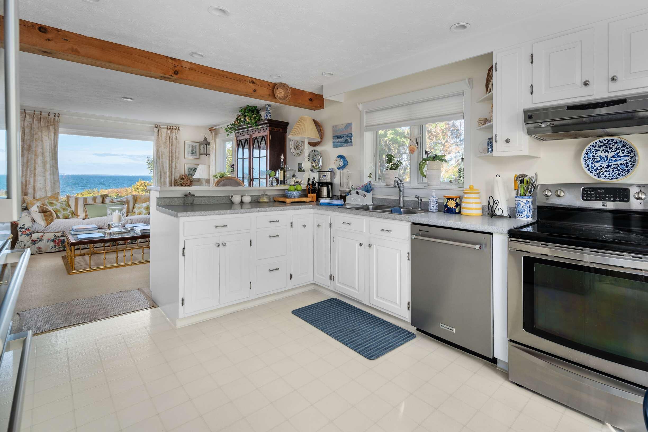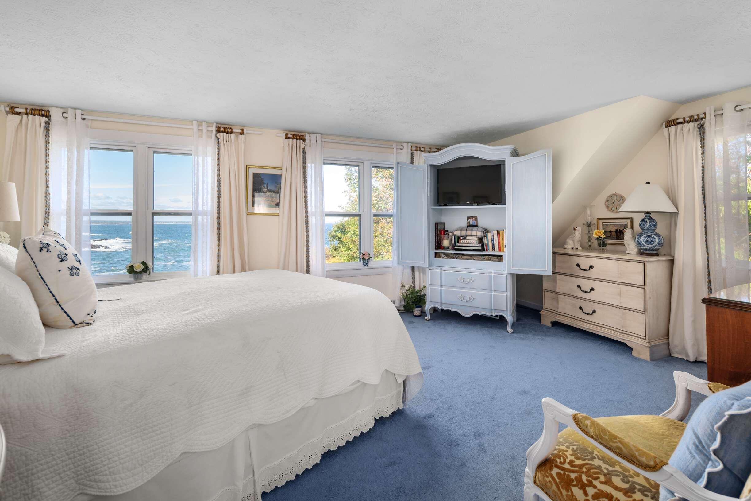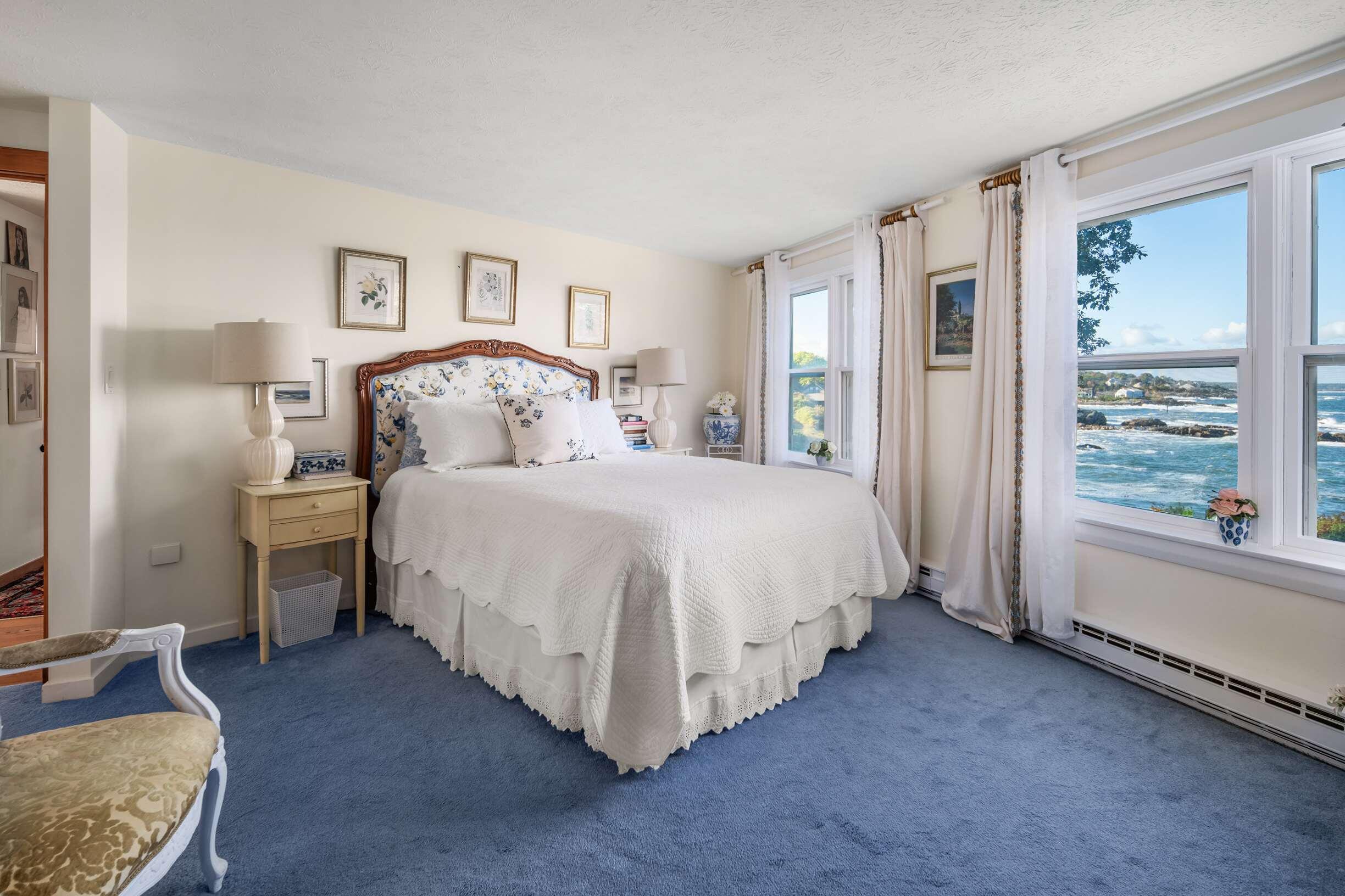 A truly notable Ogunquit waterfront property with commanding ocean views combined with serene privacy and timeless natural beauty. Located just off Shore Road, this rare 1.14 acre parcel in Ogunquit overlooks Perkins Cove, a picturesque harbor where you can find both fishing boats and pleasure boats as well as a unique footbridge that spans the neck of the harbor. Take advantage of the short distance to Perkins Cove and enjoy wandering around the Cove replete with art galleries, shops and restaurants. The custom designed 3 bedroom home maximizes its coastal location, providing nearly every room with captivating water views. The main floor boasts a bright living room with dramatic ocean views opening to the spacious ocean side deck, a dining room with gleaming wood flooring, a sunlit kitchen that opens to a cozy rear deck, a full bath, and an ocean view den or office space. Upstairs, the ocean view primary bedroom features plenty of closet space, two additional ocean view guest bedrooms, and a full bath with laundry area complete this level. The lower level of the home offers a welcoming sunroom, a studio workshop, a convenient space for an in home gym, access to a single car garage, and an additional workshop with abundant storage space. A short stroll from the residence leads to a pebble beach, an ideal setting for kayaking, fishing, or savoring the passage of lobster boats. This property presents an extraordinary opportunity to own an oceanfront retreat in the ''Beautiful Place by the Sea'', all within easy reach of bustling Boston and the vibrant city of Portland.