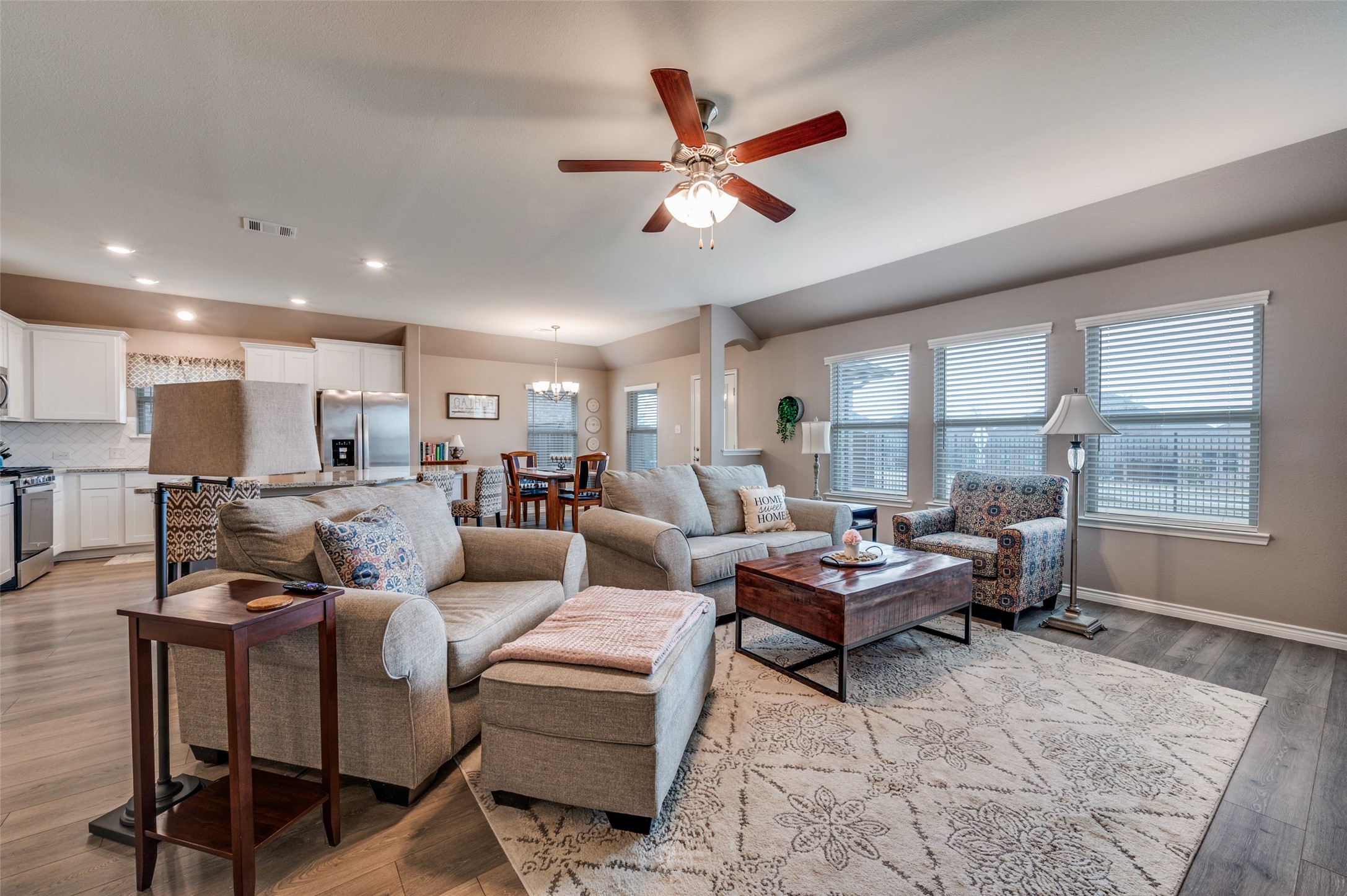 One of the most desirable floor plans in the sought-after Bluewood Community! This light-filled open-concept layout seamlessly connects the kitchen, dining, and living areas, creating the perfect space for everyday living and effortless entertaining. The stunning kitchen is the heart of the home, offering abundant cabinetry and a large center island that provides extra seating, generous prep space, and a natural gathering spot for family and guests. The spacious living area opens to a covered patio and large backyard--ideal for outdoor dining, relaxing evenings, or hosting friends. The private primary suite offers a peaceful retreat with an en-suite bathroom and a generous walk-in closet. Comfortable secondary bedrooms provide flexible space for family, guests, or a home office. Perfectly positioned within the neighborhood, this home offers an ideal location just a short walk to the popular community pool and highly rated O'Dell Elementary School. Residents of Bluewood enjoy beautiful green spaces, walking trails, parks, and a vibrant community atmosphere, all within minutes of shopping, dining, and the charm of historic downtown Celina. Minutes from Preston Rd, Dallas North Tollway, and other major highways. A wonderful opportunity to enjoy country, comfort, convenience, and community in one of the fastest growing cities in Texas.