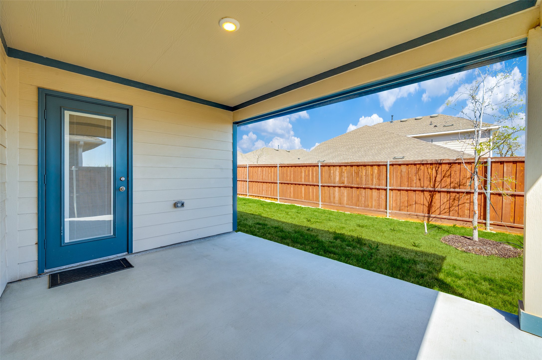 Lightly lived-in and beautifully maintained one-story home offering a spacious four-bedroom layout and an open floor plan ideal for everyday living. The inviting kitchen flows seamlessly into the dining area and large living room, creating the perfect gathering space for family and friends. The kitchen features abundant cabinetry, a large pantry, generous breakfast bar, stylish fixtures and hardware, and a refrigerator with ice maker and water dispenser. The light-filled primary suite offers a relaxing retreat with a private en-suite bath and a large walk-in closet. Three additional bedrooms provide comfortable space for family, guests, or a home office, each with sizable closets. A separate utility room includes a nearly new washer and dryer for added convenience. Enjoy the private backyard with a patio and privacy fence--perfect for outdoor relaxation or entertaining. Lawn service is included, making maintenance easy. Ideally located with quick access to Highway 380 and I-35 for an easy commute, shopping, and dining.