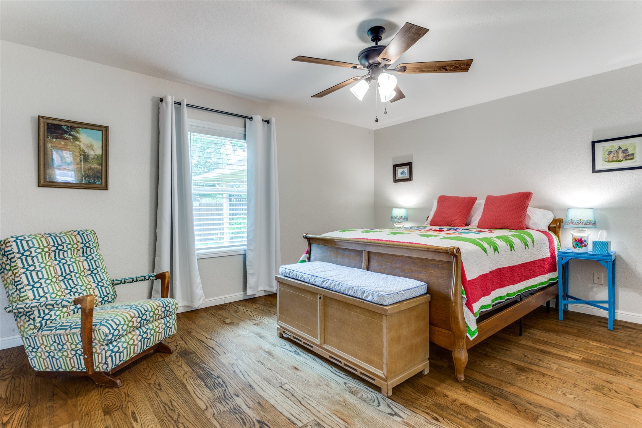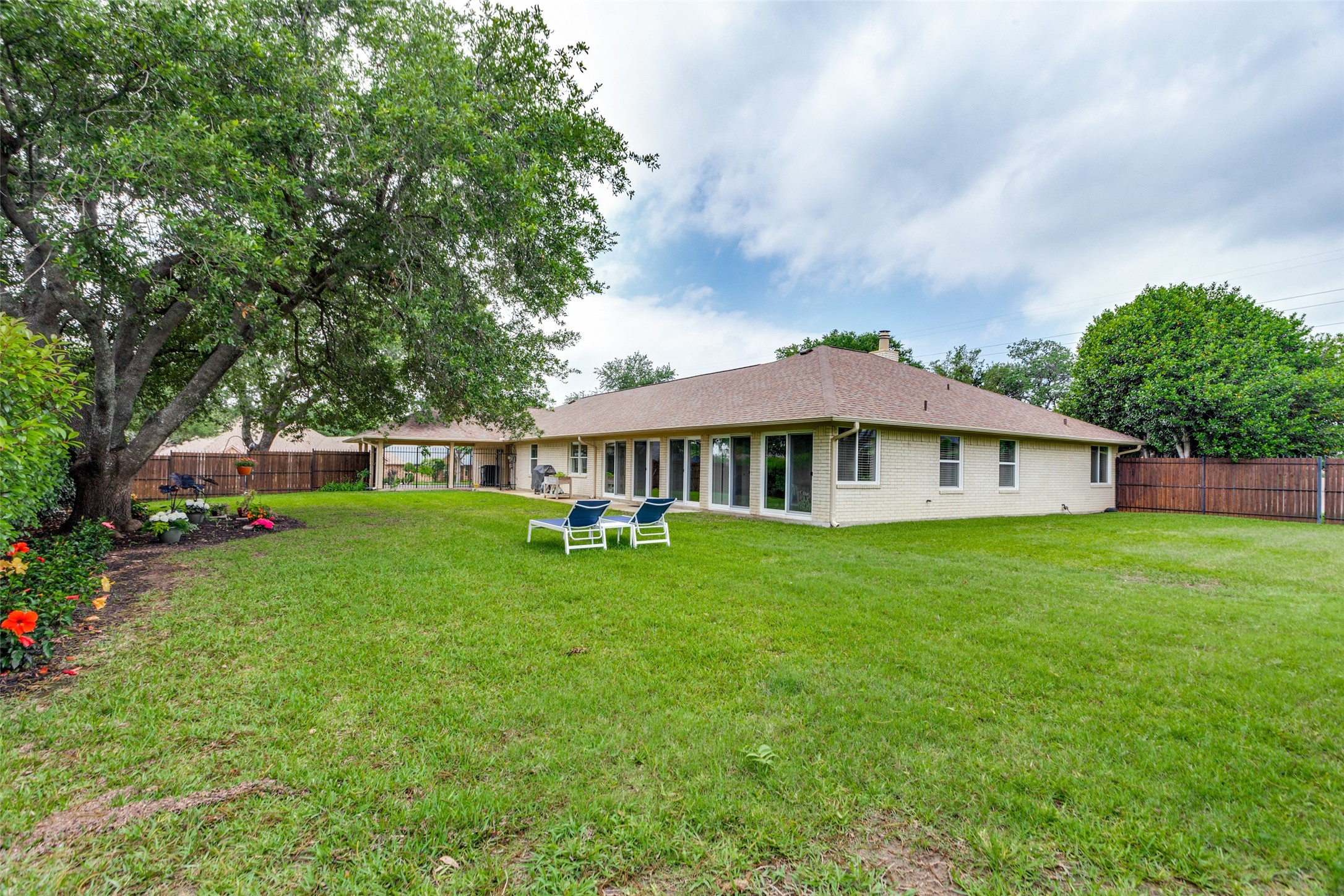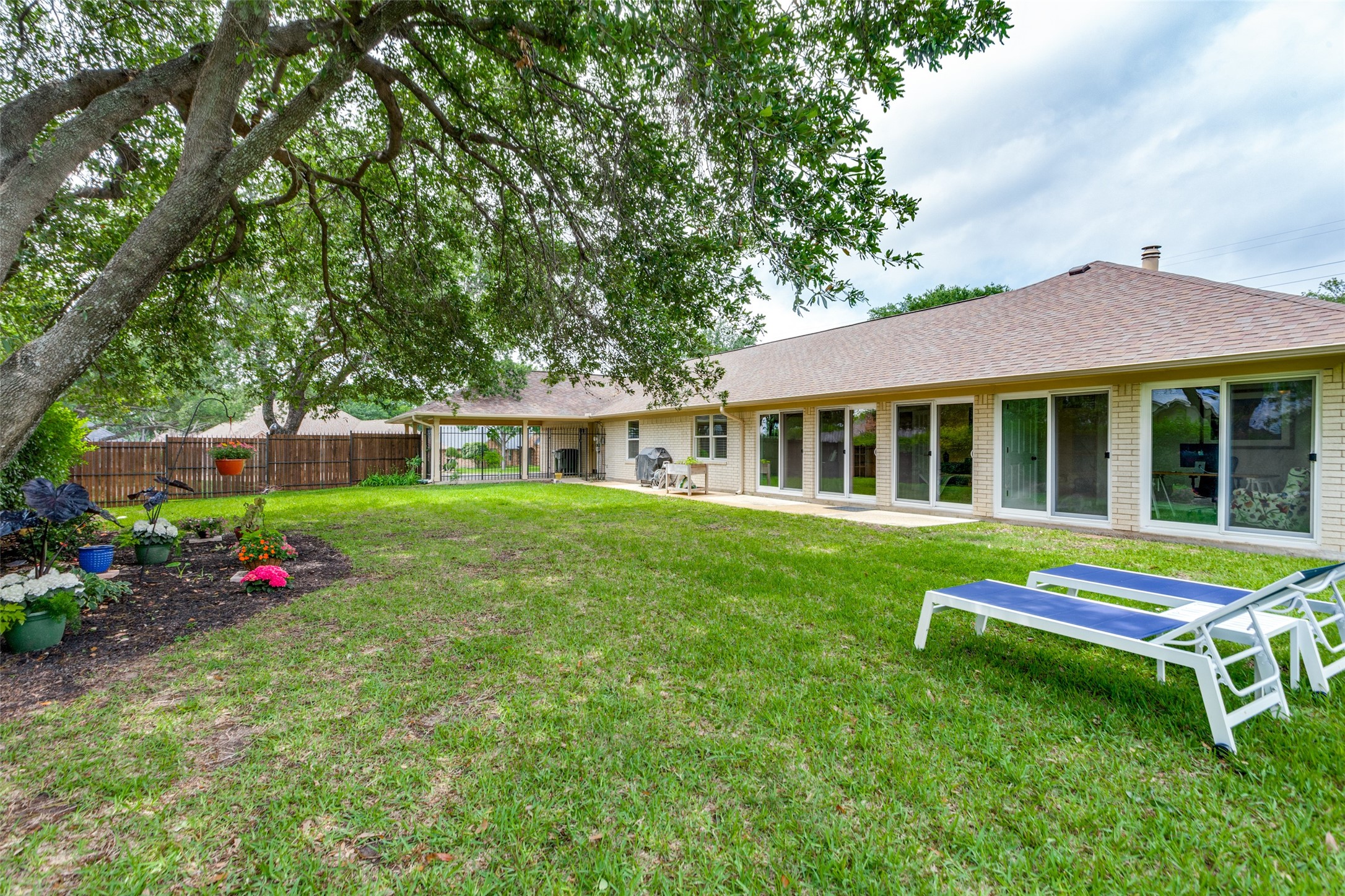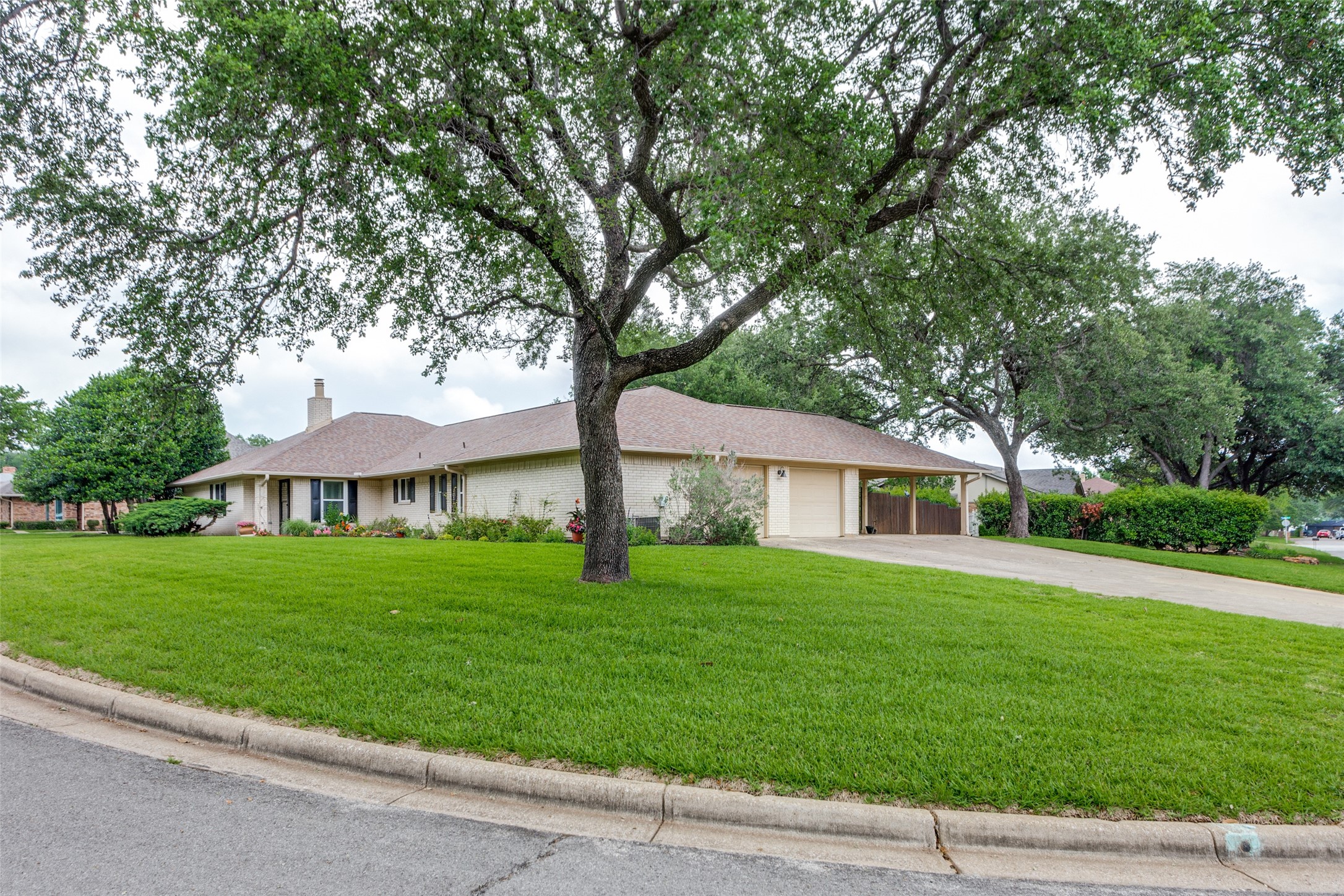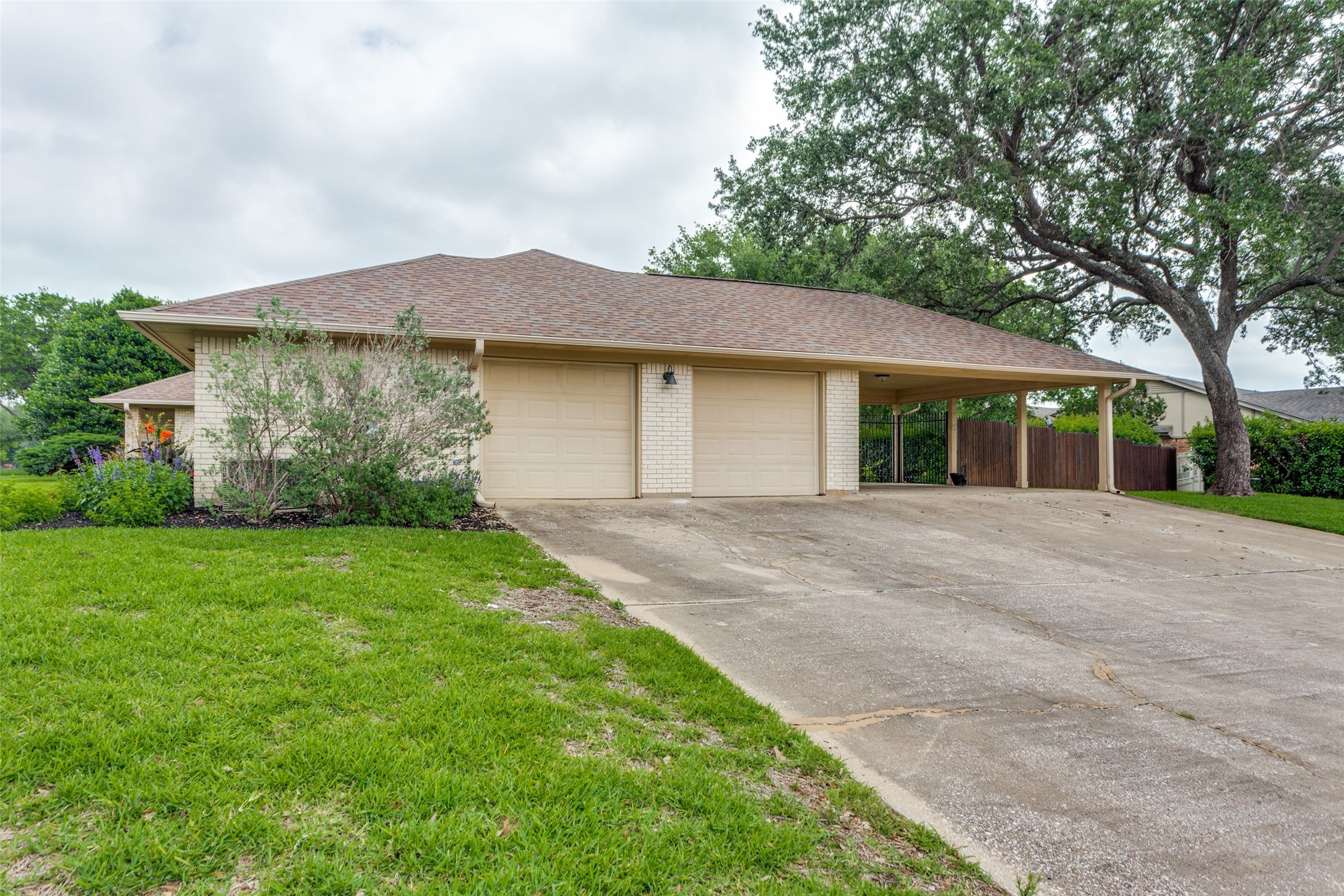 Contingent on sale of another home, please continue to show this hidden gem of a neighborhood just minutes from Interstate 820! Nestled on a spacious half-acre lot, this sanctuary boasts vibrant flowers, lush trees, and ample green space. Step inside to a sunlit single-story abode, where an inviting open floor plan offers versatile living spaces for gatherings or quiet retreats. Generously sized bedrooms, formal dining and living areas, a cozy sunroom, and private office cater to every need. The expansive kitchen features abundant cabinets, ample counter space, and double ovens, perfect for culinary enthusiasts. Retreat to the luxurious primary suite, complete with dual vanities, deep soaker tub, walk-in shower, and expansive closet. Hardwood floors and fresh paint enhance the ambiance, while magnificent doors and windows seamlessly merge indoor and outdoor living. Oversized garage, covered carport, and a vast driveway situated on a gorgeous corner lot!. Meticulously cared for!