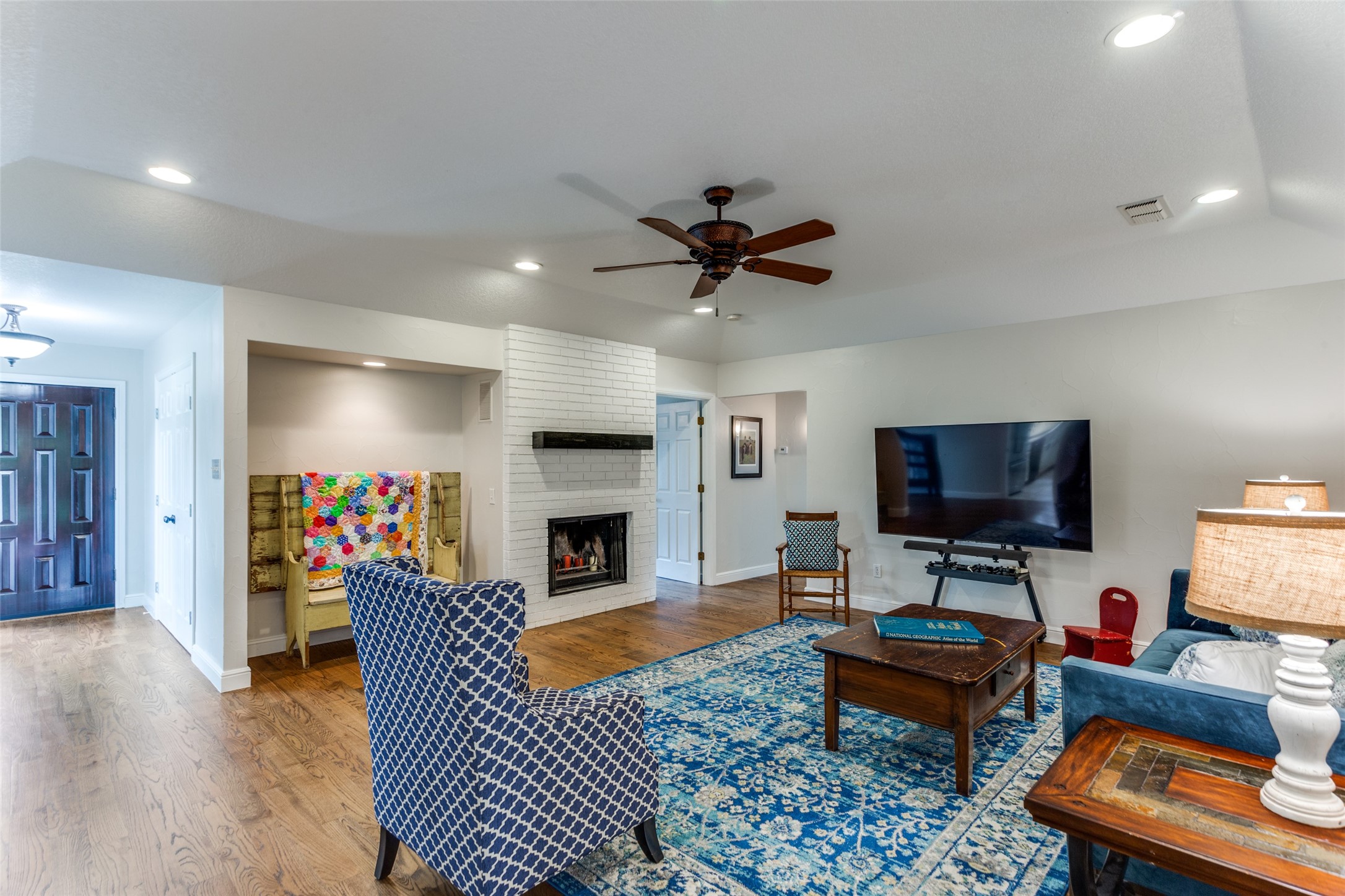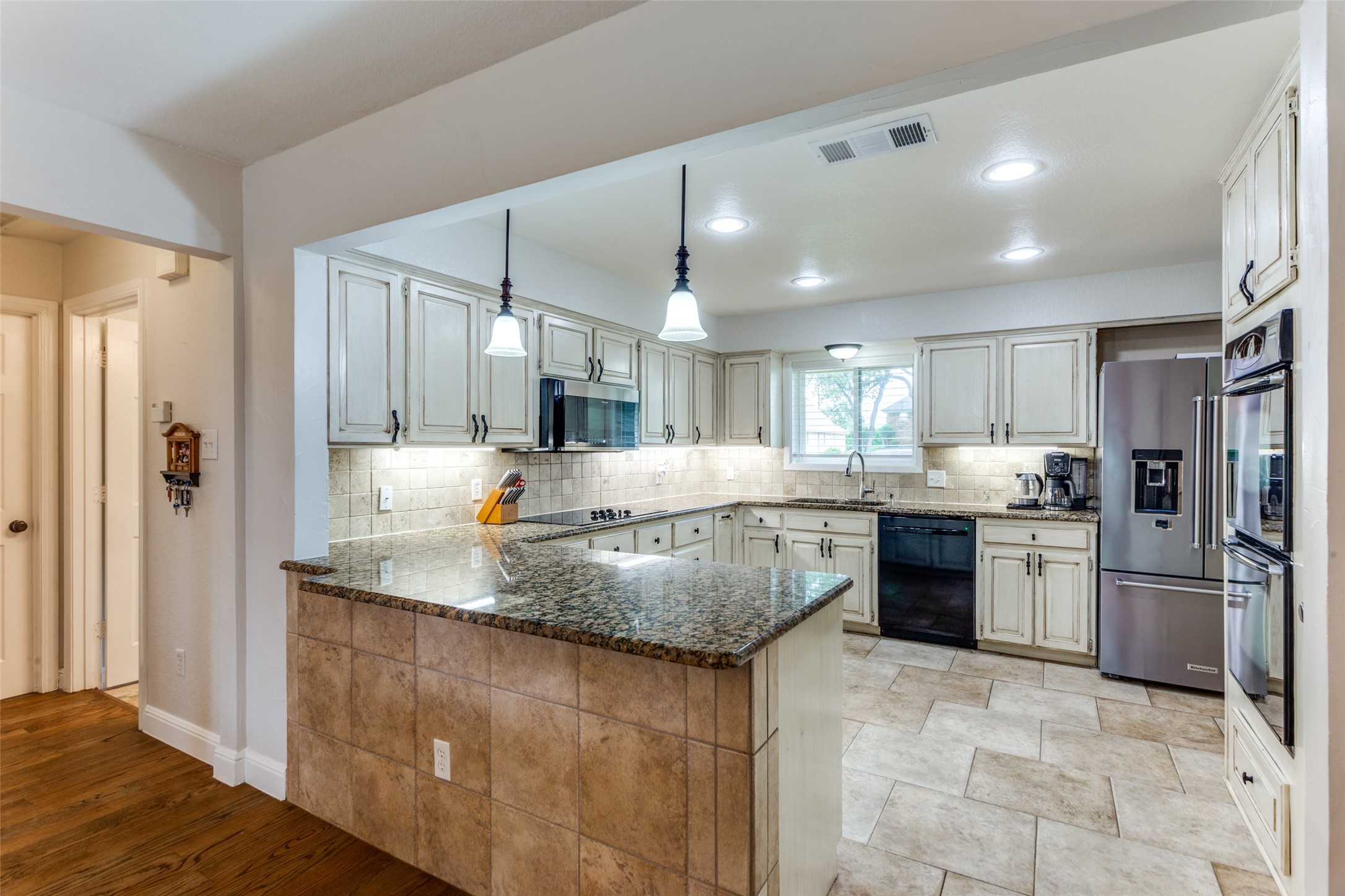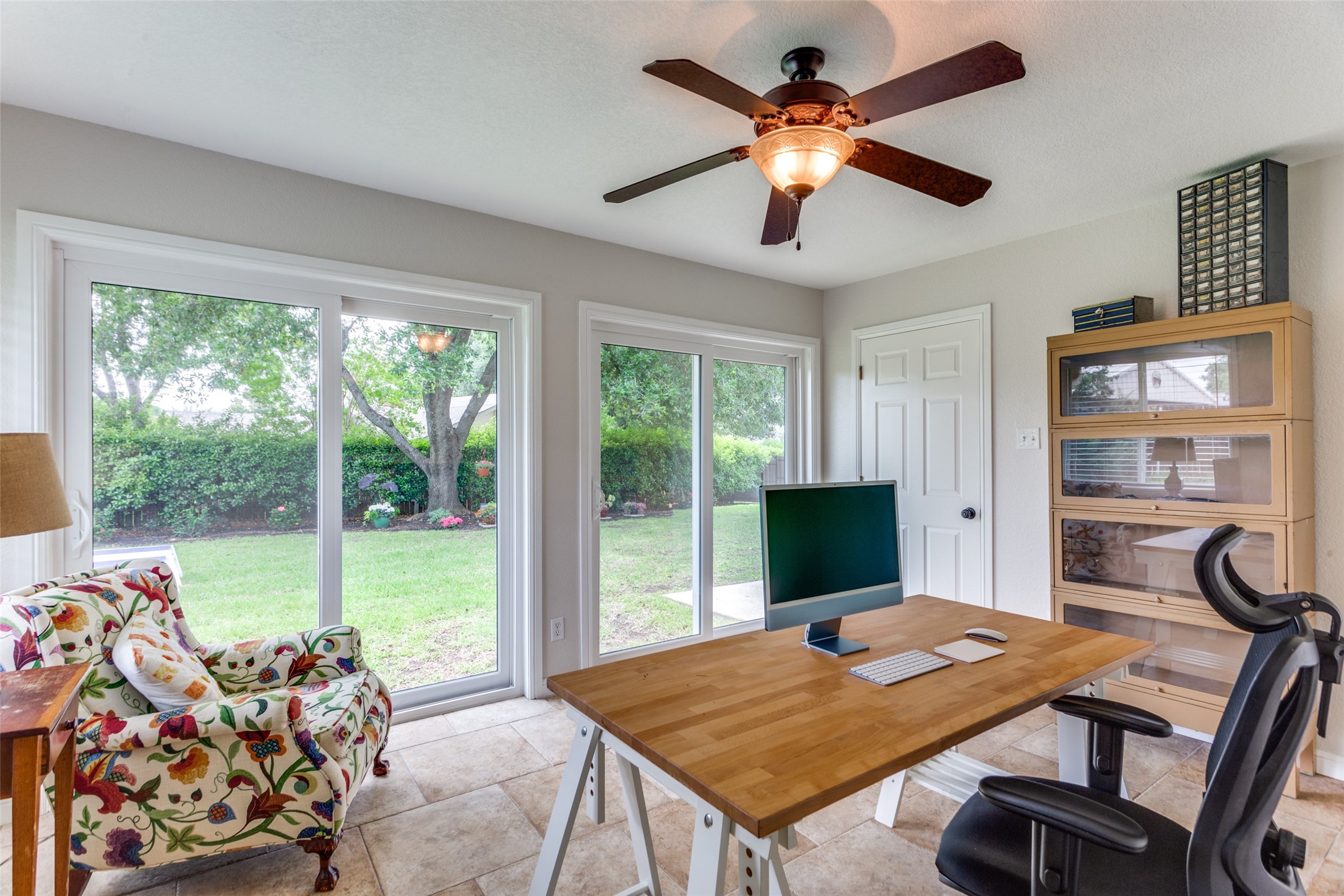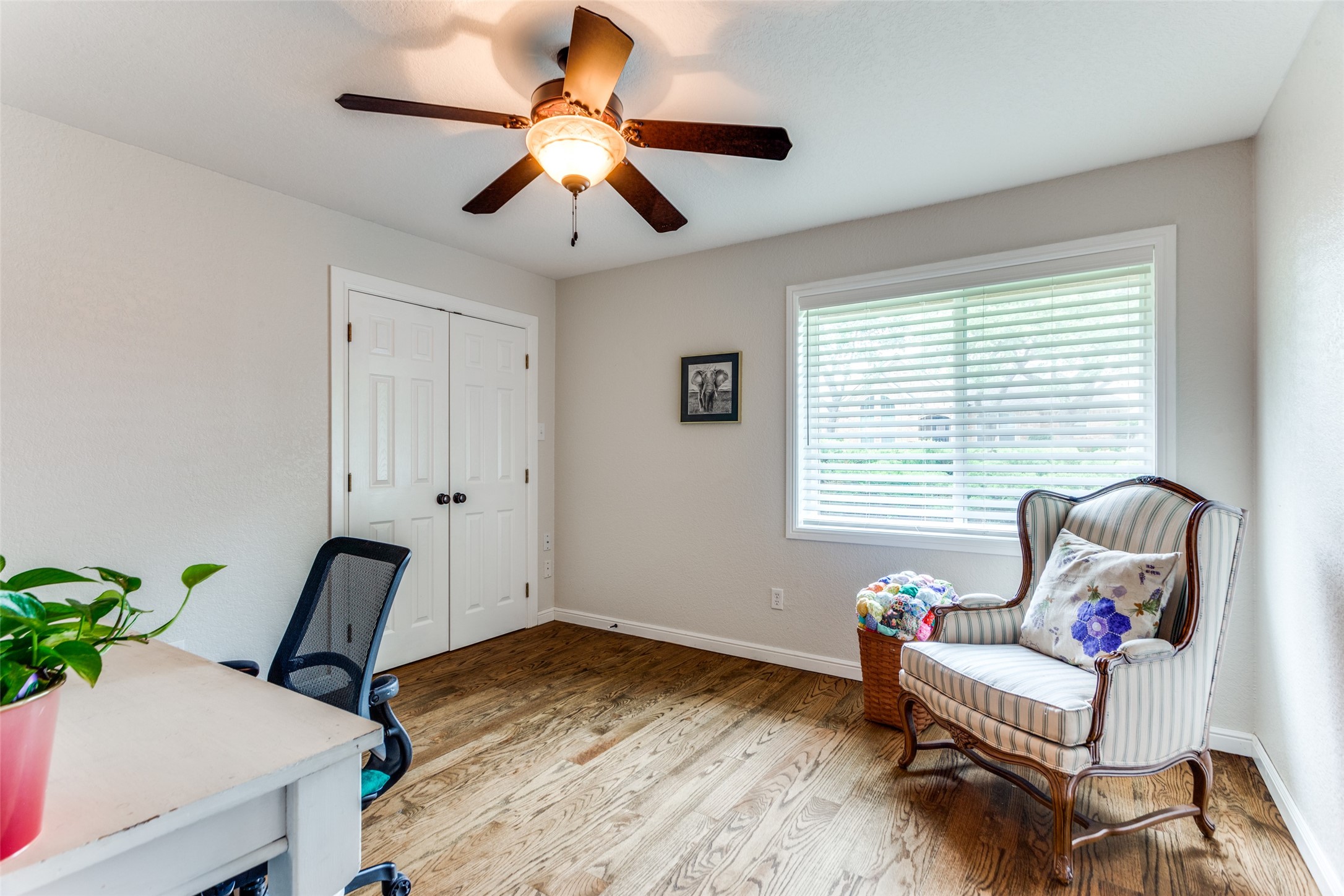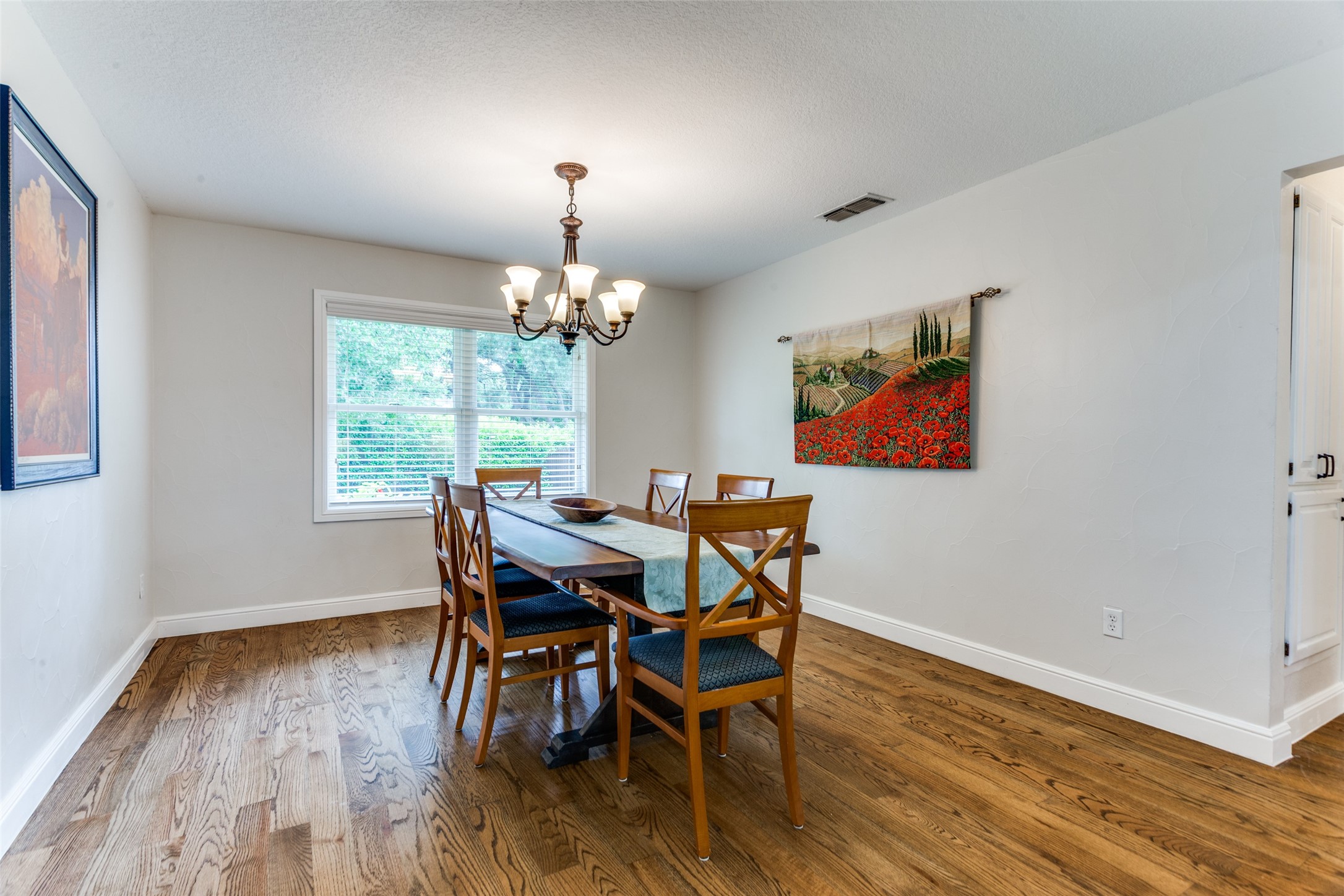 Contingent on sale of another home, please continue to show this hidden gem of a neighborhood just minutes from Interstate 820! Nestled on a spacious half-acre lot, this sanctuary boasts vibrant flowers, lush trees, and ample green space. Step inside to a sunlit single-story abode, where an inviting open floor plan offers versatile living spaces for gatherings or quiet retreats. Generously sized bedrooms, formal dining and living areas, a cozy sunroom, and private office cater to every need. The expansive kitchen features abundant cabinets, ample counter space, and double ovens, perfect for culinary enthusiasts. Retreat to the luxurious primary suite, complete with dual vanities, deep soaker tub, walk-in shower, and expansive closet. Hardwood floors and fresh paint enhance the ambiance, while magnificent doors and windows seamlessly merge indoor and outdoor living. Oversized garage, covered carport, and a vast driveway situated on a gorgeous corner lot!. Meticulously cared for!